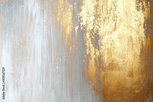 Fototapeta premium Weathered Gray and Gold Textured Wall Background with Rustic Metallic Finish and Distressed Streaks and Stains