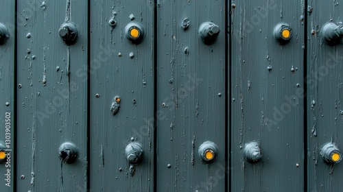 © Oat_Photo, Obraz premium Weathered Gray Wood Plank Wall Texture with Metal Bolts