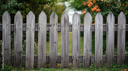 © WITTAYA ANGMUJCHA, Fototapeta premium Weathered gray wooden fence featuring natural wood texture and rustic details, creating an authentic backdrop for design banners