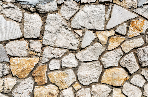 © Alexandr Blinov, Obraz premium Weathered grey stone wall as creative background texture