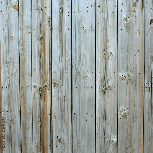 © Pic, Fototapeta premium Weathered grey wood planks background texture, vertical grain, outdoor fence, rustic setting, design element