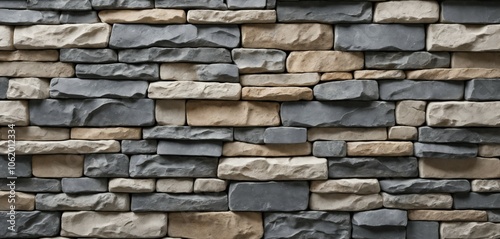 © Art and Illustration, Obraz premium Weathered Irregular Gray Stone Wall