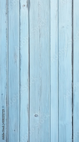 Fototapeta premium Weathered light blue wooden planks create a serene coastal backdrop, perfect for rustic or beach-themed designs. Vertical boards showcase natural grain and texture.