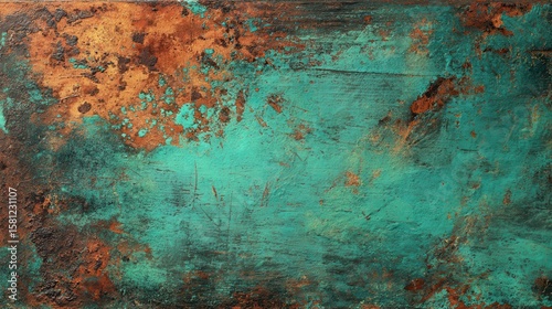 Obraz premium Weathered metal surface with scratches and a vibrant turquoise and rust...