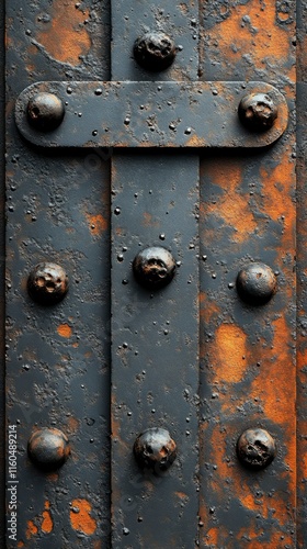 Fototapeta premium Weathered Metal Texture with Rivets - Dark Grey and Rust Background