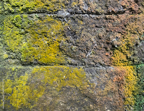 Obraz premium Weathered old wall with mossy surface. Grunge and abstract texture background...