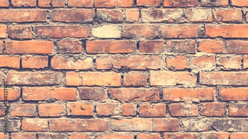 © virza, Fototapeta premium Weathered orange and brown masonry structure exhibits a rough, textured surface