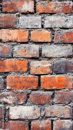 © romanets_v, Obraz premium Weathered red brick wall with distinctive texture and aging mortar