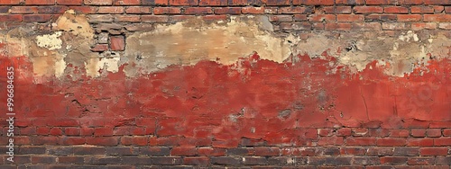 Obraz premium Weathered Red Brick Wall with Peeling Plaster