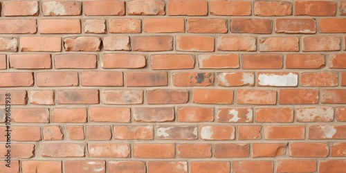 Fototapeta premium Weathered red brick wall with rough and textured surface, red, weathered