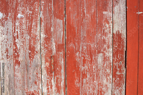 Naklejka premium Weathered Red Wooden Wall. A vintage red wooden wall with peeling paint and...