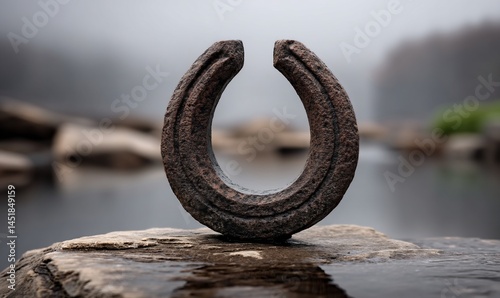 © regulator, Fototapeta premium Weathered ring stands on waterside rock