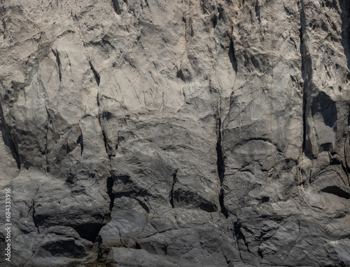 Fototapeta premium Weathered seaside rock face texture . Aged volcanic stone wall surface...