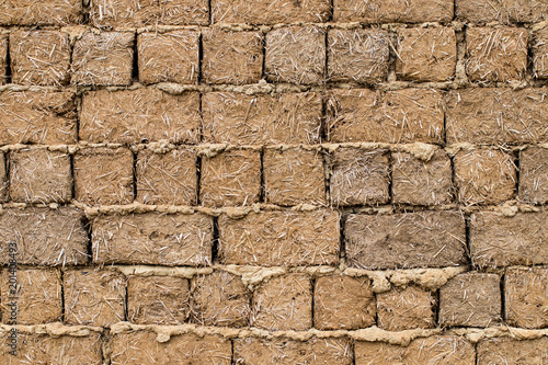Fototapeta premium Weathered stained old brick wall background. close-up