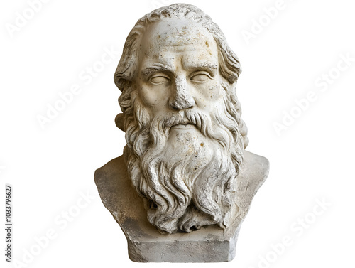 © Thak Pixel, Obraz premium weathered stone bust ancient greek philosopher isolated background long beard