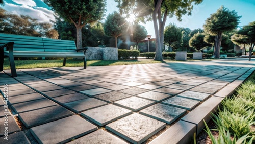 Fototapeta premium Weathered stone pavement in a serene park oasis