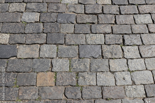 © KOSHKAROV SERGEI, Obraz premium Weathered stone pavement surface with rough texture outdoors