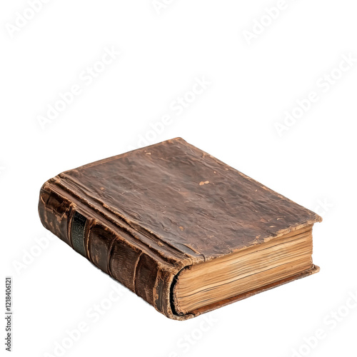 © Suryani, Obraz premium Weathered Vintage Book with Ornate Cover and Curling Pages
