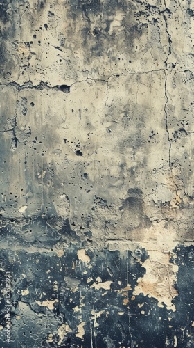 Obraz premium Weathered wall exhibiting extensive damage with holes and cracks. Abandoned...