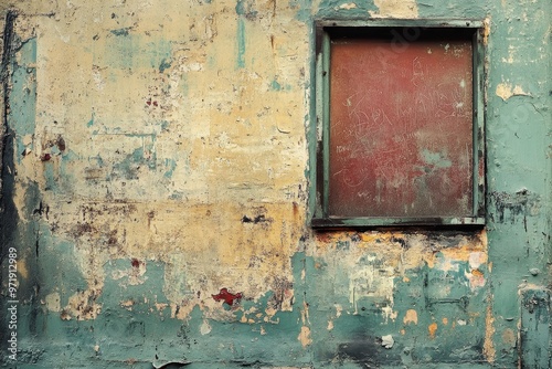 © Gambar Upi, Naklejka premium Weathered Wall with Peeling Paint and a Window Frame
