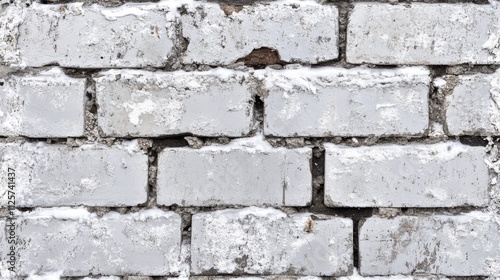 Obraz premium Weathered white and grey brick wall texture with a grunge finish, featuring cracks and a worn cement surface, perfect for backgrounds, design, and architectural projects.