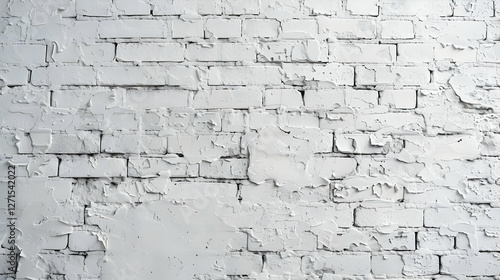 Fototapeta premium Weathered white brick wall with peeling paint, showcasing urban decay and...