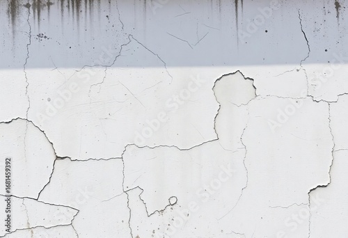 © Phitchaya, Fototapeta premium Weathered white concrete wall, vintage texture, distressed surface, background, architecture