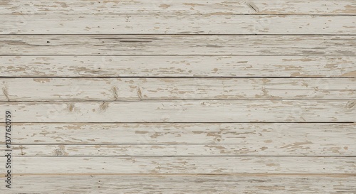 © NguyenHaiPhuong, Fototapeta premium Weathered White Wood Planks Horizontal Texture. AI Generated