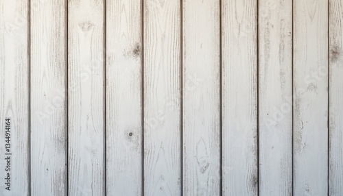 © Maryna, Naklejka premium Weathered whitewashed wooden fence texture. Rough wood background of white panels, planks. Rustic grain, distressed finish, antique look. Shabby chic aged surface with chips, peeling paint. Vertical