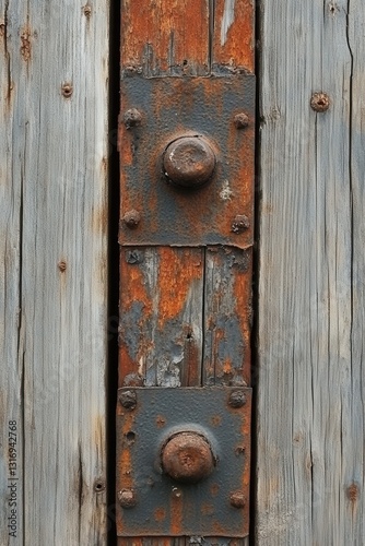 Fototapeta premium Weathered Wood and Rusty Metal Detail Capturing the Essence of Time and Decay...