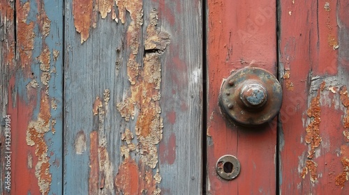 Fototapeta premium Weathered Wooden Door: Rustic Charm and Peeling Paint