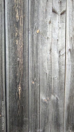© Iryna Matukhno, Naklejka premium Weathered Wooden Fence With Gray Planks Showcasing Natural Textures and Patterns in Outdoor Setting