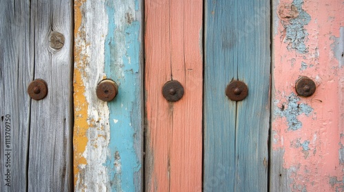 Fototapeta premium Weathered Wooden Planks with Rusty Metal Fasteners