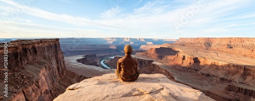 Naklejka premium Weathering process idea. A serene view of vast canyons under a clear sky,...