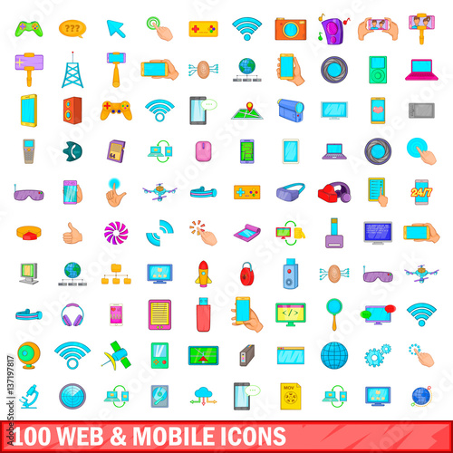 Fototapeta premium 100 web and mobile icons set, cartoon style