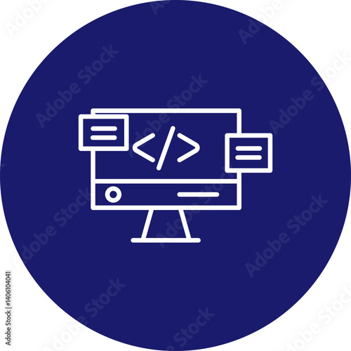 © shaneela, Fototapeta premium Web Coding Vector Line Circle Icon Design