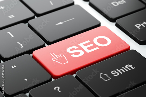 Fototapeta premium Web design concept: Mouse Cursor and SEO on keyboard