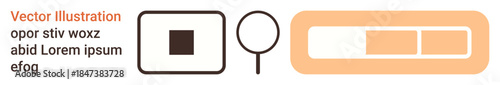 Fototapeta premium Web design, digital interfaces, search analysis, abstract patterns, UI elements, technology applications. Minimalistic shapes including a square, magnifying glass and slider. Modern web design