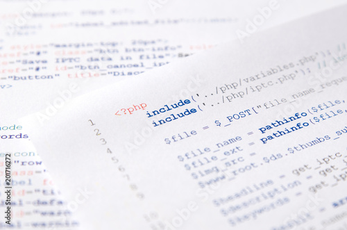© Proxima Studio, Obraz premium Web developer programming code printed on a piece of paper