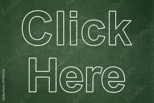 © Maksim Kabakou, Obraz premium Web development concept: Click Here on chalkboard background