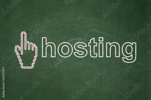Obraz premium Web development concept: Mouse Cursor and Hosting on chalkboard