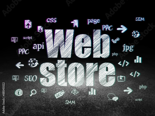 © Maksim Kabakou, Obraz premium Web development concept: Web Store in grunge dark room