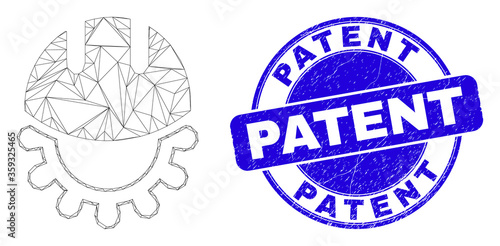 © Evgeny, Obraz premium Web mesh development helmet pictogram and Patent seal stamp. Blue vector rounded textured seal stamp with Patent message.