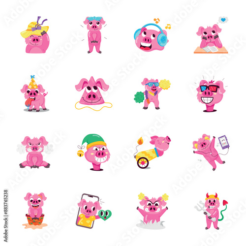 © Vectors Market, Obraz premium WebBundle of Cute Hog Flat Stickers