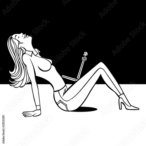 © John Takai, Fototapeta premium Webcam Girl Line Art