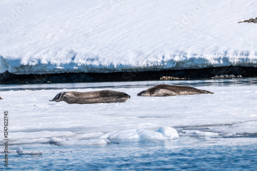 © Oleksandr Matsibura, Obraz premium Weddell seal (Leptonychotes weddellii) in Antarctica. South Pole.