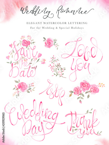 © lumitar, Naklejka premium Weddimg lettering calligraphy set with elegant pink design.