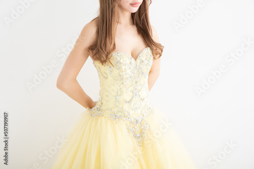 Fototapeta premium 黄色いウェディングドレスを着た女性 wedding