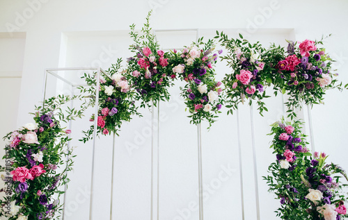 Naklejka premium Wedding arch of fresh purple flowers