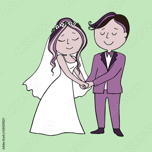 © Светлана Юргенс, Fototapeta premium Wedding. Bride and groom. vector illustration with funny people on a wedding theme. Color wedding illustration.